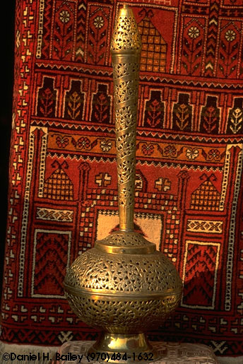 Brass lamp and carpet. Rawalpindi, Pakistan
